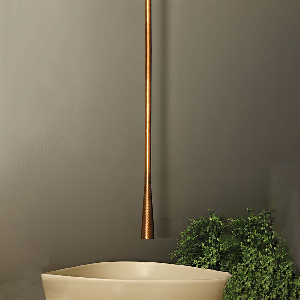 The KN-DS-CS-BRG KONICAL β DREAM SERIES Ceiling Spout with Controller brings sculptural beauty and contemporary elegance to the guest washroom. Finished in Brushed Rose Gold PVD, it adds a soft, luxurious glow that enhances any modern space. Thoughtfully designed, it delivers a harmonious blend of style and function, creating a serene and sophisticated ambience.